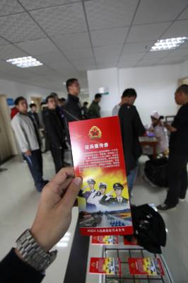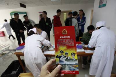 宜昌征兵体检开始11月5日,许多应征青年在宜昌市西陵医院参加体检。当日,宜昌市征兵体检工作正式开始,预计到15日体检结束。今年征兵与往年相比,廉洁征兵力度进一步加大。宜昌建立了公开公示、责任追究等制度,加强对重点部位和重点环节检查监督。另外,对应征入伍的高校应届毕业生,按国家有关政策给予补偿学费,有助学贷款的将由国家代偿,最高补代偿金额为每人每年6000元。本报视界网黄翔摄