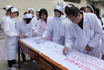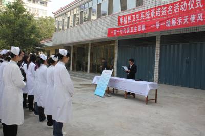 11月5日上午,在孝昌县卫生局机关院内,来自该县一医院、妇幼保健、疾控中心及乡镇卫生院的200余名医护人员,在”医德医风承诺书”上郑重地签上自己的名字。连日来,孝昌县卫生局结合民主评议政风行风工作,在广大医护人员中开展医德医风教育,并完善举报体系,接受群众的监督,以净化群众就医环境。宋俊初摄