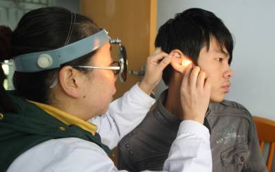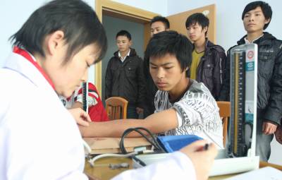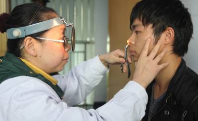11月6日,一名恩施青年在征兵体检站接受耳鼻喉科检查。连日来,2010年全国冬季征兵工作全面展开,各地适龄青年踊跃报名参军。