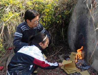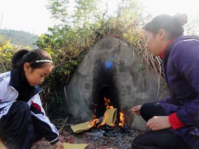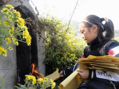 让孩子了解中国的传统节日11月6日,湖北省郧县刘洞镇九年一贯制学校的一名小学生和爸爸妈妈一起在坟前缅怀去世的爷爷。当日是阴历10月1日,是我国祭祀先辈的传统节日——寒衣节(又名冥阴节),多年来该校一直把独具特色的传统节日作为中国瑰丽文化的一个重要组成部分让学生了解和传承。(湖北省郧县刘洞镇九年一贯制学校高超邮编442525)