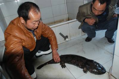 农家特色养殖路(通讯员卢发荣)11月4日,业州镇柏蜡树村八组村民陈让斌,正在观察人工养殖的8公斤左右大鲵的生长情况。陈让斌从2008年开始进行大鲵代理养殖。现在养殖数量已达800多条,最大的已有8公斤左右,走出了一条特色养殖新路子。(建始县业州镇宣传办卢发荣电话:18972403395)