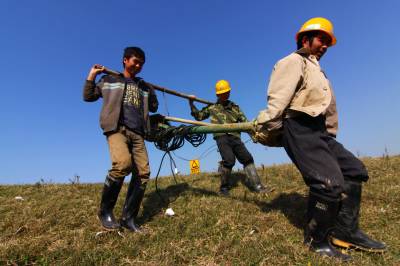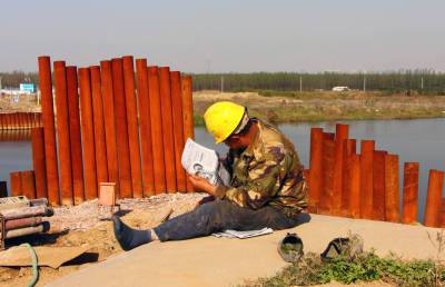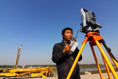 2010年11月8日,湖北襄樊,一名汉江三桥建设者在操作全钻仪。