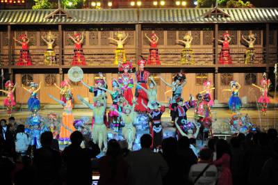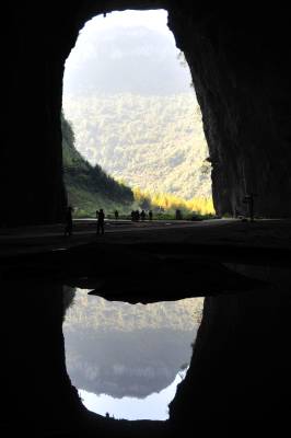 2010年11月8日,湖北省恩施土家族苗族自治州利川市腾龙洞风景区游人如织,游客纷纷涌入规模宏大的腾龙洞,观看岩溶地质奇观,欣赏大型土家族情景歌舞《夷水丽川》和梦幻激光秀,感受土家民族的动人传说,腾龙洞的别样风景让游客置身在变幻莫测、空旷神秘的梦幻世界。本报视界网张国荣摄