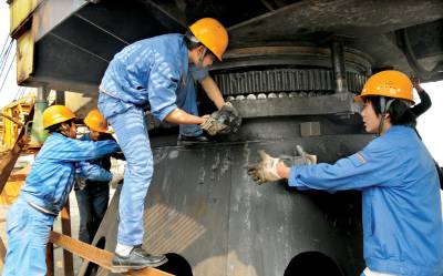休息时间抢修浮吊7日,中国十五冶汽车修理厂员工利用休息时间在有色金属公司码头抢修浮吊。据了解,该公司位于长江沈家营港埠码头趸船上的16吨浮吊突然出现故障,无法进行装卸工作,影响公司正常生产,他们立即向十五冶汽车修理厂求援。为帮助企业尽快恢复生产,修理厂干部员工一起出动,利用休息时间抢修浮吊。黄石市黄石日报摄影部邱孝威罗三玲摄电话:13807232603邮编:435002