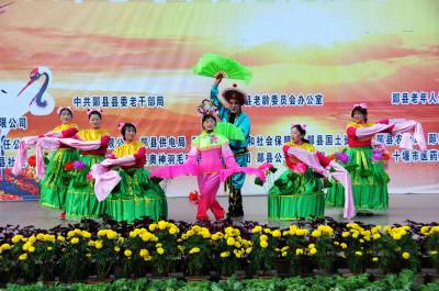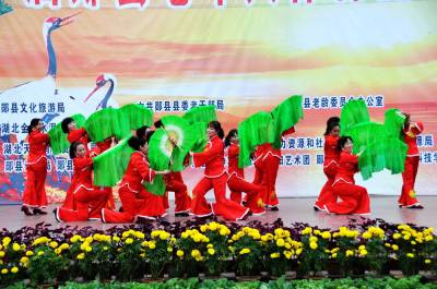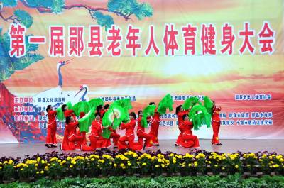 11月6日下午,湖北省郧县历史上规模最大持续时间最长的老年人体育健身大会在郧阳文化广场闭幕,这次老年人体育健身大会从8月14日开始历时75天。在2000多人参加的9大项比赛中有47个队分获金奖,银奖,铜奖,组织奖,道德风尚奖,突出贡献奖,121人分获一,二,三等奖。图为武协艺术团风彩舞蹈队在闭幕式上表演的《海派秧歌》时的情景。周家山摄湖北省郧县城管大队电话13872840078邮编442500
