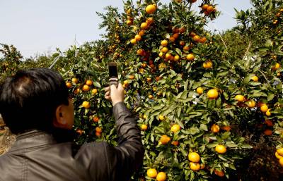 宜都建成首家快乐农场2010年11月8日,一客户用手机拍摄柑橘。湖北省宜都市红花套镇首家快乐农场吸引众多的游客,快乐农场建在该镇马王山300亩的生态蜜柑基地,供游客观光游乐赏橘,同时农场主通过网上销售蜜柑。目前,武汉、上海、北京和马来西亚等地已认购蜜柑900多棵。文振效