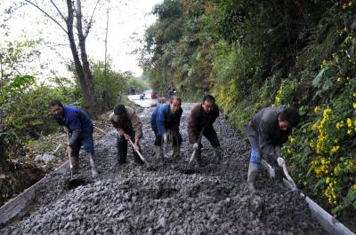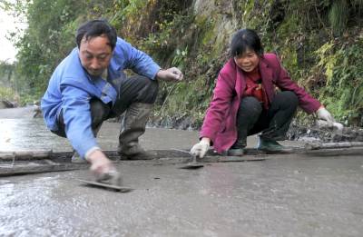 近日湖北省郧县沧浪山国家森林公园管理局投资470万元加速建设景区公路,沧浪山国家森林公园方圆近100平方公里,通达海拨1827米沧浪山主峰景区公路长43公里,今年施工建设一期工程为18.7公里,路面宽4米,现已完成14公里铺设任务。图为吴飞明,陈士荣夫妻俩正在压光铺设水泥路面时的情景。周家山杨泽华摄湖北省郧县城管大队电话13872840078邮编442500