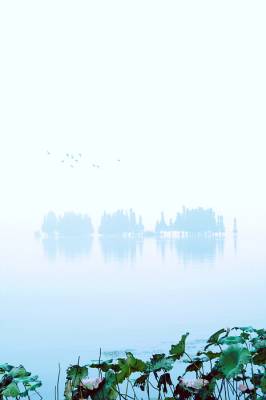 荷叶、鸟岛、飞鸟构成一幅如诗如画风景图。拍于东湖落雁景区。