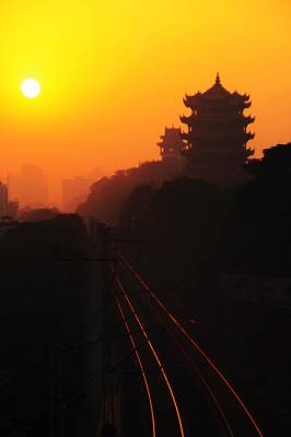 秀丽的黄鹤楼,京广线从旁边穿越而过。