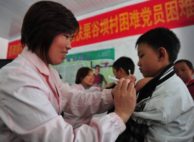 > 山里医生进校入村开展新型流感疫苗接种工作