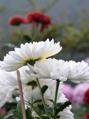 11月9日,湖北民族学院生物科学与技术学院菊花培植基地姹紫嫣红,妖娆万分。由该院院师生运用课内学习知识培育出的黑牡丹、火凤凰、白玉等多个品种的菊花竞相开放,争奇斗艳。