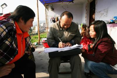 图为2010年11月6日,恩施市屯堡乡坎家村民在田间地头接收人口普查的情景。湖北恩施航空路184号(445000)电话:13329820458