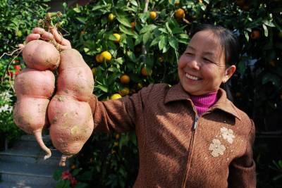 罗田一妇女培育出奇特红薯”孪生兄弟”