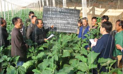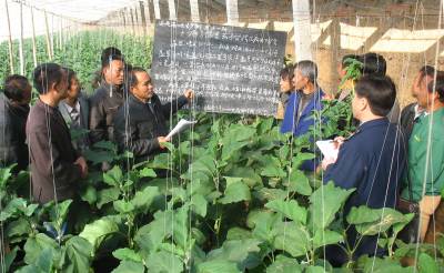 ”田间课堂”富菜农11月8日,随县安居镇组织农业技术人员到该县最大的蔬菜大棚种植基地,对无公害蔬菜产销专业合作社成员进行科学技术培训,帮助当地农民蔬菜种植户增收致富。本报视界网、随州日报社记者杨文明摄