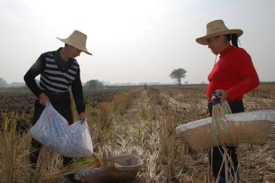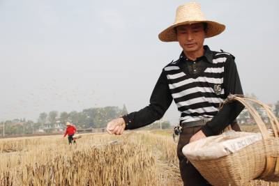 日前,汉川市田二河镇八屋咀村村民林国发夫妇,在自家刚收过水稻的田里播种小麦。为促进农民增收,提高土地利用率,该镇积极引导农民消灭冬闲田,种植小麦每亩补贴20元,种植油菜每亩补贴10元。截至目前,全镇5万亩冬闲田已全部被消灭。