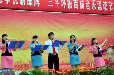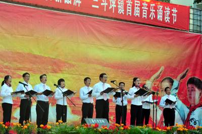 2010年11月10日,位于三峡大坝所在地的湖北省宜昌市夷陵区三斗坪镇举办以”建设快乐学习党组织、打造创先争优新品牌”为主题的首届音乐诵读节,机关干部、教师、企业职工及三峡移民等群众演员纷纷登台,用朴实的话语唱响中华奋进之歌,共同庆祝三峡成功蓄水175米,赞美三峡工程的宏伟壮观和三峡移民舍小家为国家的奉献精神,讴歌移民在党和国家的惠民政策关怀下,积极支持三峡工程和投身社会主义新农村建设,靠勤劳和智慧创造了美好的新生活。本报视界网张国荣摄