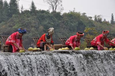 11月9日,恩施土家族苗族自治州”柑桔第一乡”、白柚大乡——宣恩县李家河乡的贡水河畔,几个穿着土家服装的幺妹在清澈的栏水河堤上清洗刚采摘的白柚。宣恩贡水白曾两次获得全国农产品金奖。据了解,李家河乡是宣恩贡水白柚原产地,该乡近年来把发展贡水白柚作为农民致富的重头产业,全乡已发展贡水白柚2.2万亩,今年可采摘商品果80余万个,可为柚农增加收300余万元。该乡将清洗后的白柚通过打蜡等加工处理,”远嫁”山外。本报视界网陈开银联系:宣恩县李家河乡政府陈开银电话:150272175392010.11.10