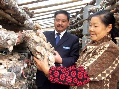 南漳农信社倾力打造香菇产业南漳县位于鄂西北荆山腹地,”八山半水分半田”的地貌造就了丰富的林木资源。近年,该县农信社以打造山区特色经济作为助农致富的突破口,每年发放小额贷款2300万元,支持农民栽培袋料香菇5000万筒。仅此一项可为农民增收1.2亿元以上。图为11月10日,南漳县巡检镇巡检司村村民张兴会(前)正在和信用社信贷人员一起观察大棚香菇的生长情况。(通讯员:吴金好/摄)作者单位:湖北省南漳县信用联社联系地址:湖北省南漳县城关水镜路138号电话:13986351388邮编:441500