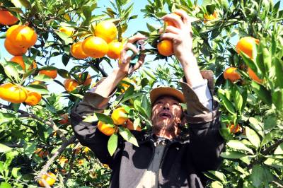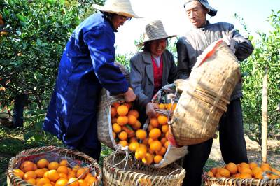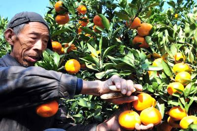 金秋时节,”中国早熟蜜柑之乡”、”中国柑橘之乡”湖北省宜昌市夷陵区的满山橘园果实累累,橘农抢抓晴好天气加紧采收柑橘。今年,该区35万亩柑橘喜获丰收,产量达到45万吨,大宗价格为1.39元/公斤,比去年同期上涨0.40元/公斤,成为20万橘农的主要收入来源。本报视界网张国荣摄