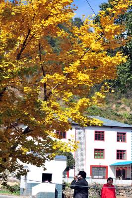 初冬时节,在湖北省神(龙架)宜(昌)旅游公路宜昌市夷陵区境内沿线,今年统一改造的峡江风格民居在渐泛金黄的银杏树叶衬映下,呈现出五彩斑斓的迷人”秋景”,成为吸引过往游客眼球的一道别样风景。本报视界网张国荣摄