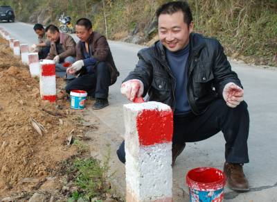 业州镇美化亮化乡村公路(通讯员卢发荣)11月10日,业州镇农村公路小李线岩风洞村路段,几位工人正在刷新路边的警示桩。业州镇抓住冬农开发时机,着力加强农村道路安保设施,实施乡村道路美化亮化,打造农村公里建、管、养示范路段。截至目前已刷新乡村公路警示桩6000根、隔离墩254个。整修不锈钢地名牌11块、线路弯道警示牌16块,新增、修补路肩墙5.6公里。(建始县业州镇宣传办卢发荣电话:18972403395)