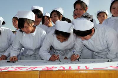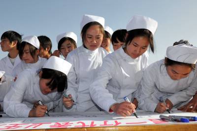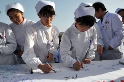 11月11日下午,湖北省郧县卫生系统在郧阳文化广场隆重举行”万名医生进社区,万名医师下基层大型义珍暨医德医风承诺签名仪式”。来自城区7家医疗单位和各乡镇医院院长和卫生局,卫生监督局机关领导干部600余人在医德医风承诺公开书上签下了自已的名子,随后在广场上举行了义诊服务和免费发放药品。图1为郧县人民医院医护人员在医德医风承诺公开书上签名时的情景。图2为郧县中医院医护人员在广场上为老人们义诊时的情景。周家山湖北省郧县城管大队电话13872840078邮编442500