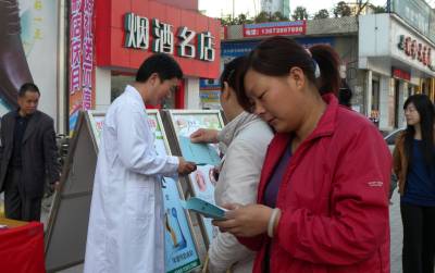 11月12日上午,郧县疾控中心医生在街头为市民发放糖尿病预防宣传资料。在世界糖尿病日到来之际,郧县疾控中心医生走向街头通过现场义诊、发放传单等形式,大力宣传糖尿病防治的重要性。今年11月14日是”世界糖尿病日”,口号是”控制糖尿病,刻不容缓”。(湖北郧县新闻宣传中心曹忠宏杨玖拴摄)