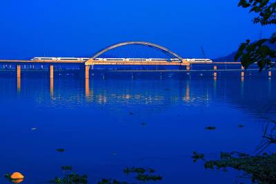 武广高铁就像一条玉带飘落东湖上,让广东、湖南的旅客还未下火车就能一睹武汉东湖迤逦的风光美景,而这一段高铁一举成为东湖新的标志性人文景观。