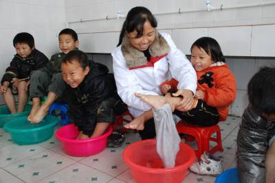 爱心妈妈和留守儿童11月12日傍晚,来凤县绿水小学”爱心妈妈”杨子云逐一给本校10余名一年级寄宿生洗脸、揩脚,陪着他们愉快地度过睡觉前段时光。小杨是学校学生生活管理员,照顾留守学生周到细心。像她这样关爱学生的”爱心妈妈”在全县有两千多名。该县有寄宿制学校26所,共接收留守学生13000多名。全县各级各类寄宿制学校设施配套、功能完善,为留守学生营造了温馨、舒适的”留守学生之家”,已成为”亲情教育的基地,爱心互动的平台”,实现了”学生幸福,家长放心,社会满意”的目标。本报传媒网唐孔琪摄通联:来凤县教育局电话:13581213418