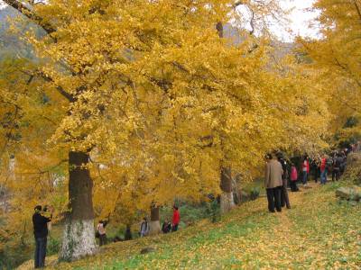 2010年11月13日,湖北安陆市古银杏国家森林公园美景如画,游人如织。湖北省安陆市素有”银杏之乡”的美誉,境内有全国最大的古银杏群落,拥有千年以上古银杏59株,百年以上银杏4683株,银杏数量之多、年代之久、树形各异为全国之最。全市银杏面积达20多万亩,银杏树达3672万株,人均61株,人均储量居全国首位,被誉为”中华银杏市”,被确定为”国家银杏自然保护区”,2009年被国家林业局批准设立古银杏国家级森林公园。安陆古银杏国家森林公园由钱冲景区和白兆山景区共同组成,规划总面积2413公顷,其中钱冲景区1800公顷,白兆山景区613公顷。园内自然景色优美,古银杏参天连片,是目前我国现有两大自然状态古银杏群落之一,是中原地区罕见天然古银杏群落。目前,园内银杏树叶一片金黄,眼下正是观赏金色银杏叶的时节。连日来,来自省内外的游人源源不断前来观赏,不少摄影爱好者慕名前来观景拍照。