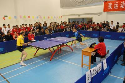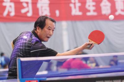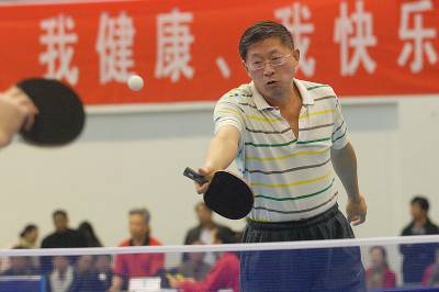 11月14日,湖北省教育厅主办的全省高校”校长杯”乒乓球赛在湖北经济学院落拍。来自武汉大学、华中师范大学、湖北经济学院等全省46所高校的400余名校级党政领导,在湖北经济学院同台竞技,一试身手,角逐”校长杯”乒乓球团体比赛、女子单打两个项目的奖杯。经过3天角逐,湖北工业大学获得团体甲组冠军,长江大学获得团体乙组冠军,武汉电力职业技术学院郑玉获得女子单打冠军。本届比赛采用中国乒乓球协会审定的最新《乒乓球竞赛规则》进行,实行单循环赛和单淘汰制,团体比赛和单打比赛均采用11分制,五局三胜。”校长杯”乒乓球比赛活动已经举办至第13届,高校校长带头参加运动健身,已经形成湖北高校的一个体育文化品牌,对于丰富校园文化生活、增进高校交流意义重大。图为选手在比赛中。