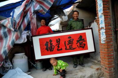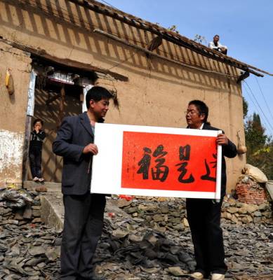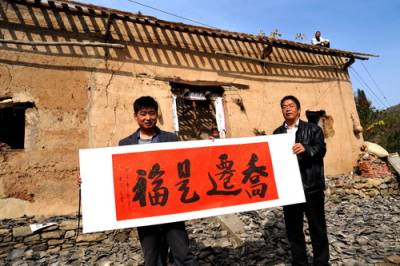 11月13日,湖北省郧县农信联社包保移民干部将一幅名人书法作品”乔迁是福”送到柳陂镇挖断岗村四组即将外迁移民郝良军的家中。至此,该县农信联社已累计向外迁移民赠送名人书法作品达58幅,受到广泛赞誉。为祝福外迁移民在新的家园安居乐业,早日发家致富,郧县农信联社特邀请郧县籍著名书法家、原国家商务部副部长、驻美国、荷兰等8国商务参赞、中国书法家协会理事、上海市书法家协会主席罗开福为南水北调郧县外迁移民题写书法作品,无偿赠送给外迁移民,对郧县大批外迁移民起到了积极的心理抚慰作用。截至目前,郧县已成功组织南水北调移民外迁35批次,累计外迁移民6089户,25902人,占整个南水北调中线工程移民外迁任务量的86%。