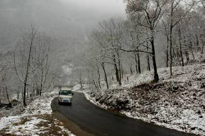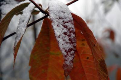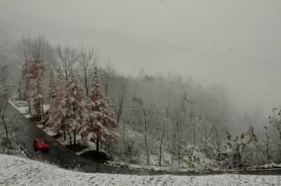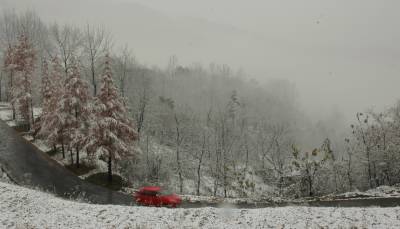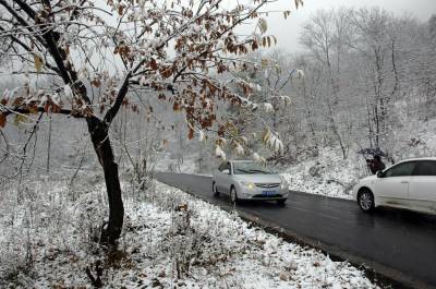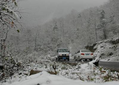 14日,神农架林区降下今年入冬以来的首场大雪。中午12点多开始雨雪交加,不到两个小时,红、黄的树叶上落上雪花;漫山遍野,银装素裹,一派隆冬的景象。