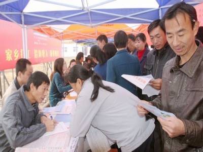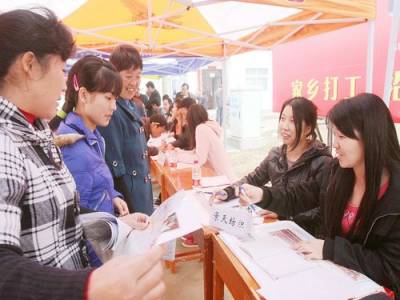 天门当好移民”红娘”15日,天门市白茅湖棉花原种场刘家坡移民安置点移民在家门口了解招工信息。连日来,天门市委宣传部组织宣传战线、市人力资源和社会保障局、市劳动就业局等单位开展”我为移民送岗位”活动,搭建企业用工平台,构架移民就业桥梁,将岗位送到移民家门口。截止目前,当地2830位移民朋友与景天纺织、锐风服饰、稳健纺织等企业达成了就业意向。(本报视界网刘银斌摄)