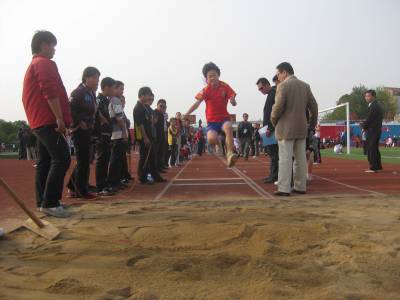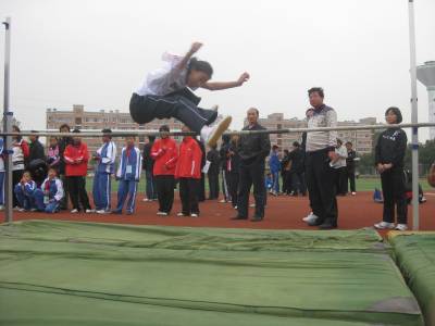 体育竞技,各展英姿14日,安陆市王义贞镇中心小学选手熊佳妮在全市田径运动会上跳出了3.88米的好成绩,夺得该市女子跳远冠军。为检验各学校阳光体育开展情况,展示涢城儿童体育竞技风采,该市于13日、14日举行了2010年安陆市小学生田径运动会,经过两天角逐,王义贞镇、实验小学2代表队分别获得团体冠亚军。签约摄影师:王代金