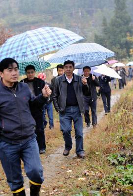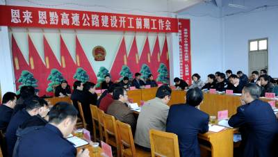 11月15日,工作人员在恩来、恩黔高速公路共用段——宣恩县椒园镇椒园村准备开工仪式现场。恩施至来凤(恩来)、恩施至重庆黔江(恩黔)两条高速与沪渝高速恩施西出口相通,设计速度80公里/小时、路基宽度24.5米、四车道高速公路标准建设,建成后将成为连接我国中西部的交通动脉。两条高速全长168.8公里(其中共用约32公里),概算总投资136亿元,总建设工期48个月,计划12月25日开工。本报视界网宋文、王成摄