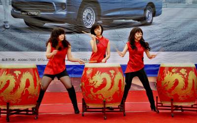 "水鼓舞"现身江城车展