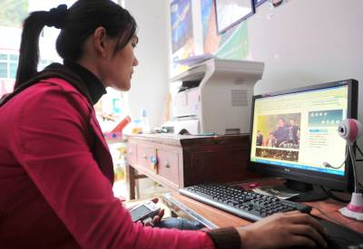 偏远山村电脑梦正圆11月9日,建始县景阳镇偏远的粟谷坝村一年轻女青年正在查看当天县网站新闻。(该村61岁老党员柳茂福正在电脑上向村民介绍自己用相机记录下的村里今昔巨变。)随着新农村建设不断深入,该县电信营运部门把山村农民享受信息生活作为一项重要工程来抓,纷纷投资架设光纤,将宽带接进偏远农民家,使越来越多的山村电脑梦正圆。本报视界网刘波建始县新闻中心刘波联系电话13032794298