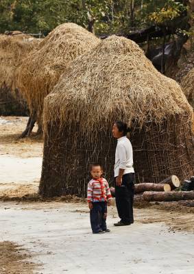 中秋节前,祖孙两在村口守望回家的亲人