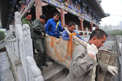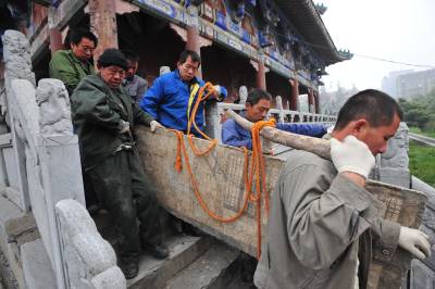 湖北襄樊出土并修复的全国唯一的南宋生活场景的墓葬壁画出修复室进博物馆