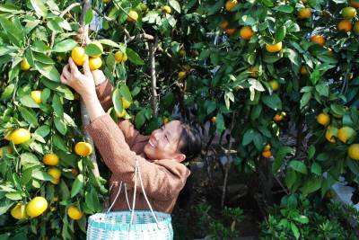 IP为:119.99.66.68近年来,罗田城乡居民大力发展庭院经济,利用自家庭院栽种花果树木,既美化环境又丰富了家庭生活。图为17日凤山镇农村妇女吴咏娥在自家庭院喜摘桔子。本报视界网王志高王家栋摄