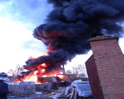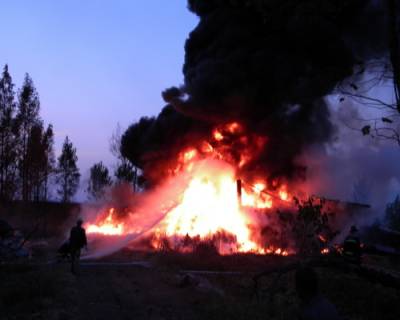 图文:房县一松油加工厂突发大火当事人已被警方控制17日下午17时许,房县城南3公里处一松油加工厂突发火灾。等19名消防官兵火速到达现场时,该处着火区域火光冲天,浓烟有50多米高,着火的位置是该厂的松油油池,油池(大约20m2)和油池周边的松油原材料已经全部着火,油池下边1个卧式汽油油罐(容量大约15立方)受到火势的威胁,炼油窑的下面还有一个装有百余箱成品松油的仓库,很可能导致松油大面积燃烧和油罐爆炸。经过近半小时的奋勇扑救,扑灭油池大火投入泡沫大约200kg,水15吨,保护了1个卧式油罐和存有132箱成品松油的仓库,幸未造成人员伤亡。目前,当事人已被警方控制,火灾原因正在调查之中。(本报视界网徐雁初、张顺勇摄)