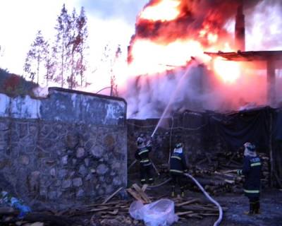 图文:房县一松油加工厂突发大火