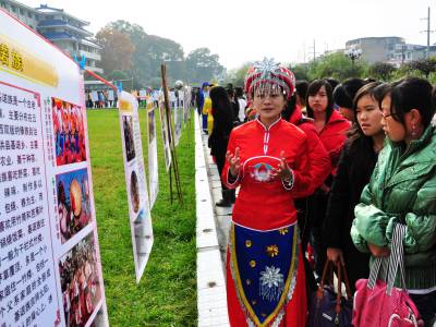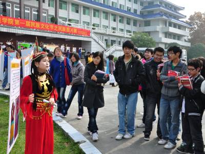 11月18日中午,地处鄂西山区的湖北民族学院举办”绚烂民族风,悠悠校园情”民族图片展。代表民族特色的近300幅图片分别从地理分布、语言文字、风俗习惯、服饰礼仪、宗教信仰等方面展示出少数民族各色风采和全国各族民族人民和睦相处,和衷共济,共同繁荣的美好画面。湖北民族学院36个少数民族的学生身穿民族服饰,向全校师生宣传党的民族政策,传播民族文化。