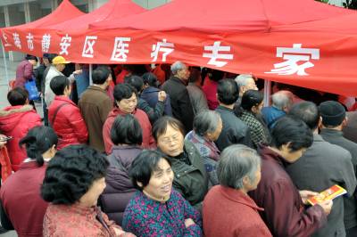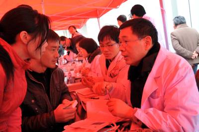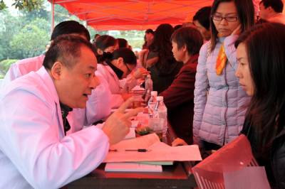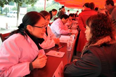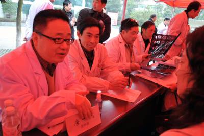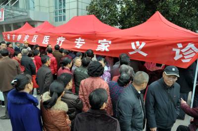 2010年11月18日,上海市华山医院、华东医院、儿童医院、第一妇婴医院、眼防医院和静安区中心医院的内科、外科、妇产科、儿科、眼科、中医科等医疗专家教授,来到对口支援三峡坝库区单位——湖北省宜昌市夷陵区,举行大型义诊活动,为三峡移民免费提供糖尿病、颈肩腰腿痛、高血压、青光眼、及其他疑难杂症的诊疗和咨询,吸引众多移民群众到场寻医问药。本报视界网张国荣摄