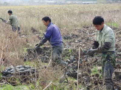 图片报道:汉川麻河的专业挖藕工11月17日中午,在汉川市麻河镇富硒莲藕生产基地,三位雇佣的挖藕工正在藕田里挖藕。据介绍,像他们这样的专业挖藕工,每人每天能挖300多斤鲜藕,平均每天能赚到100多元工钱,全镇有200多位专业挖藕工,每天挖的鲜藕除供应本地市场外,大部分销往外地莲藕批发市场。签约摄影师邹开建摄通联:汉川市麻河镇党政办公室电话:13197382491
