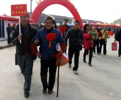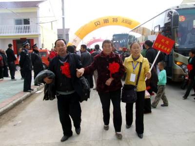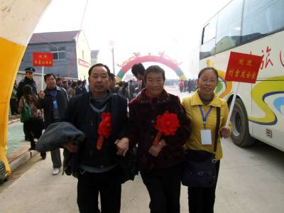 11月18日下午2:20分,湖北省郧县柳陂镇亮子湾村和周家湾村477户1963人外迁移民,乘坐160余辆客车和货车在大雾天下经过8个半小时行驶安全低达潜江市广华农场一中队,这是郧县大规模外迁移民以来一次外迁人数最多的一次。图为潜江市移民工作队员顺利的接到郧县柳陂镇亮子湾村2组移民刘吉发一家时的情景。周家山杨文华摄湖北省郧县城管大队电话13872840078邮编442500