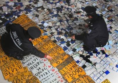 日前,曾都警方人员对近年查缴的车辆假牌、假证进行清理销毁。近年来,曾都公安局治安检查站在我市辖区内开展查堵控专项行动中,共查缴假车牌、假证件二千余件,营造有序、安全、畅通的道路交通环境。(本报视界网杨文明摄)