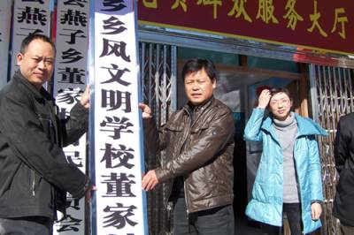 湖北省首个村级”乡风文明学校”成立11月19日,鹤峰县燕子乡党委书记、乡长谷祥勇(中)为董家村”乡风文明学校”授牌,标志着我省第一个村级”乡风文明学校”正式成立。当日,该校还开展了《齐家修养谚》的讲座。乡风文明是新农村建设的重要内容和标志、是新农村建设的灵魂。培育新型农民,关键是塑造具有农民特征、时代特点和区域特色的农村新风尚。为此,鹤峰县燕子乡党委在认真调查研究的基础上,决定在该乡8个村率先成立”乡风文明学校”,加强道德礼仪与行为操守教育,倡导科学、健康、文明的生产生活方式;培养造就新型农民,营造良好的社会主义农村新风尚。”乡风文明学校”面向全乡农民群众,以乡、村两级干部、相关部门人员、专业人员和志愿者为施教主体,围绕文化、思想、道德、知识、技能、习惯和健康等多个方面素质需求,依托乡村教育点和活动室,采取集中授课式、远程教育式、进村入点式和文化播种式等灵活多样、喜闻乐见的形式,加大对农民的思想政治、道德礼仪和科学文化教育,来提升农民品德、习惯、健康、知识和技能等方面素质。据了解,目前,该乡董家村”乡风文明学校”已开展两期讲座,其它的7个村正在制定实施方案等准备工作。通讯员向凡成摄向凡成通讯地址:鹤峰县燕子乡政府向凡成邮编:445804电话:18986853368