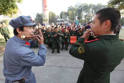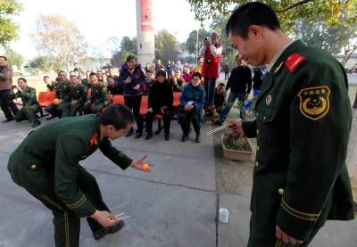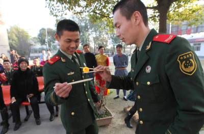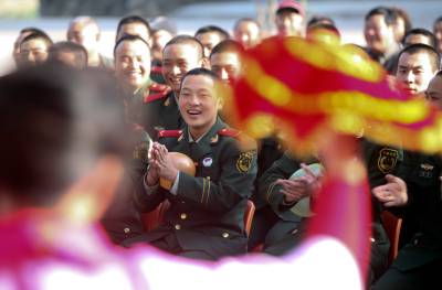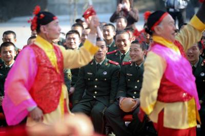 11月19日,襄樊市樊城区友谊街回民社区居民来到军民共建单位武警襄樊市支队三中队,为将退伍的武警战士送来精彩的文艺节目,感谢他们为襄樊的稳定和建设作出的贡献,祝愿他们回乡后作出更大的成绩。记者张文华摄